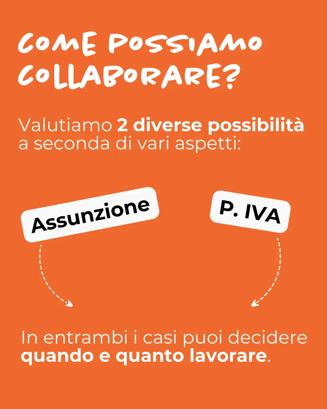 Come hai letto sopra, con noi decidi tu quando e dove lavorare, se preferisci un contratto di assunzione o di collaborazione, e in più tutti i costi sono coperti da noi.