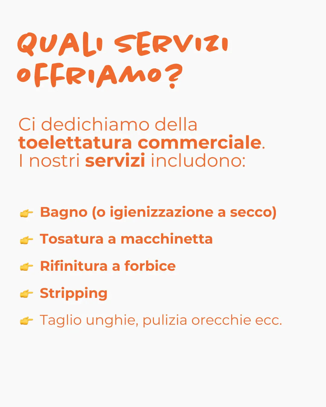 Per la sicurezza degli animali e dei professionisti gestiamo solo cani e gatti fino a 18 kg. Le taglie superiori le serviamo in uno dei nostri negozi.